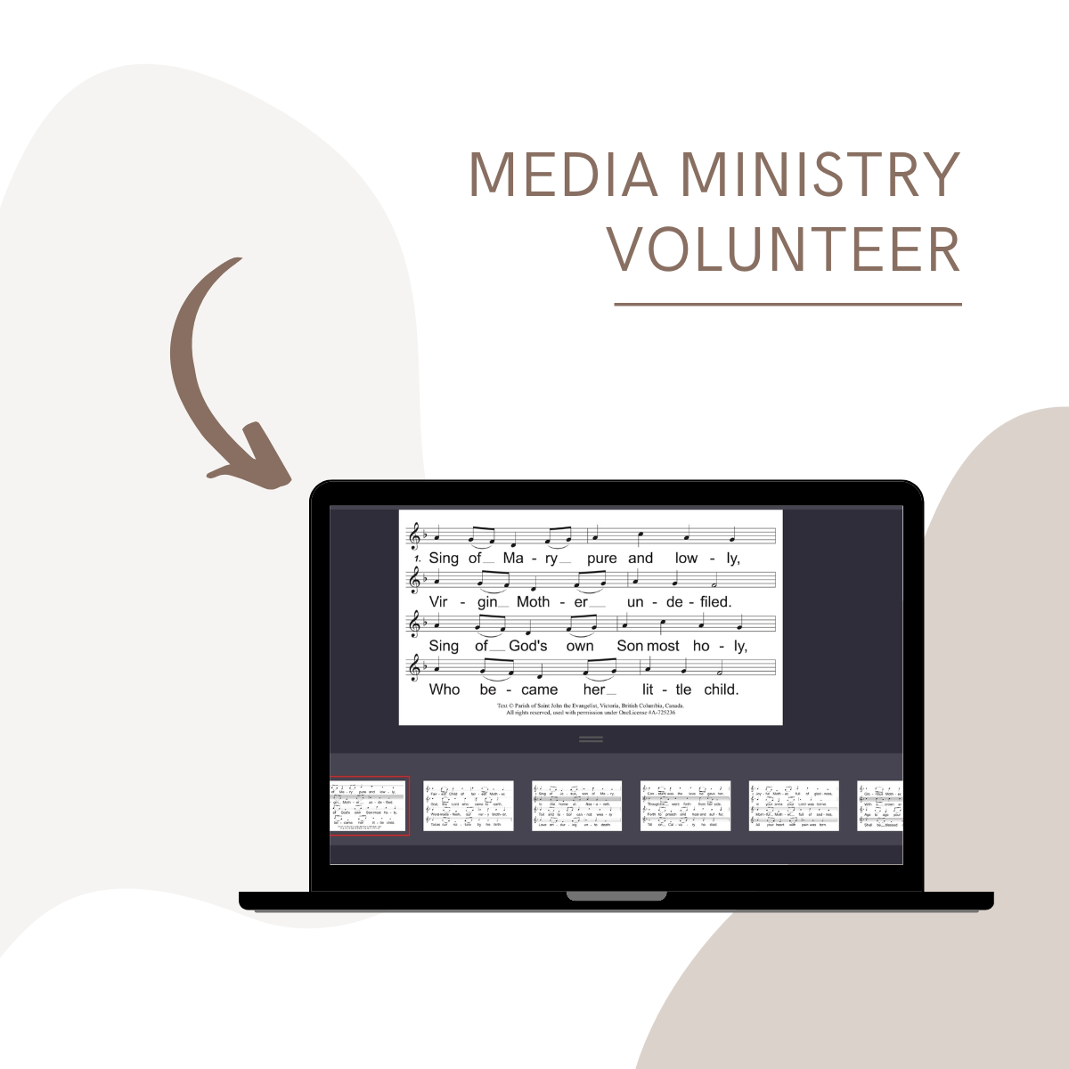 Assistance is need to control our Church Monitors during the Mass and our Cameras for our live broadcast. No Experience is needed, training will be given.